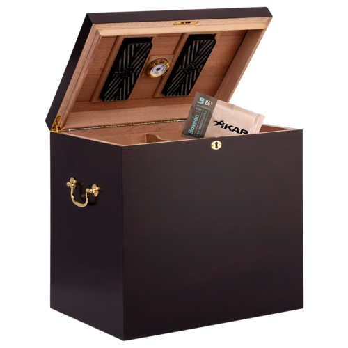Designed to provide optimal humidity control, this humidor ensures your cigars age gracefully, preserving their flavors and aromas. The sleek and sophisticated exterior is complemented by a meticulously crafted interior, featuring Spanish cedar shelves and a state-of-the-art humidification system.